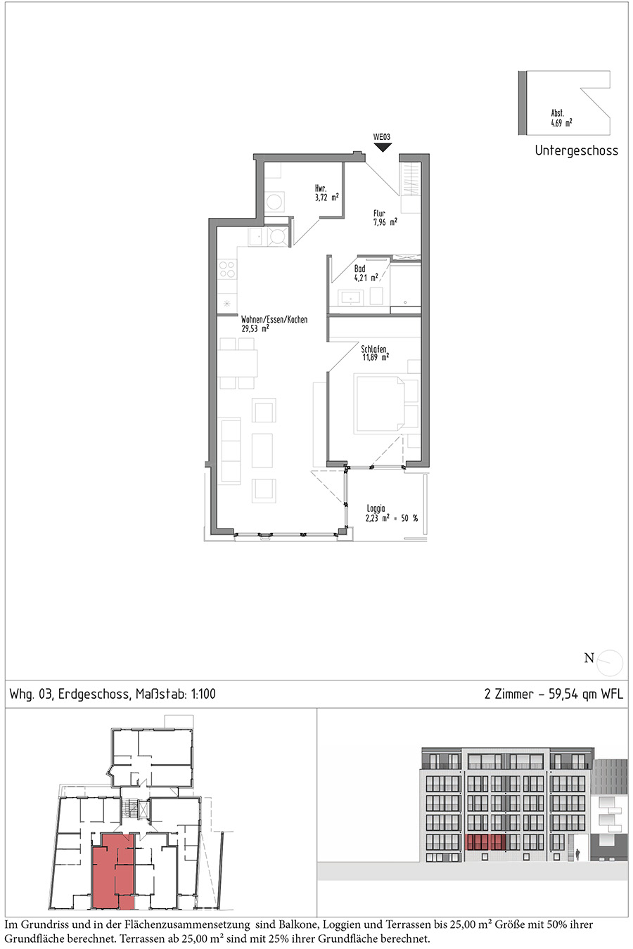 59,54 qm + Abstellraum 4,69 qm