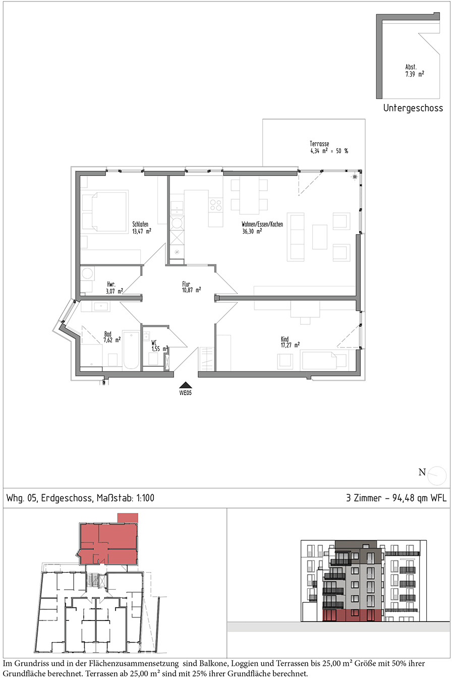 Erdgeschoss | 3 Zimmer | 94,48 qm + Abstellraum 7,39 qm | Verkaufspreis: 465.219 €