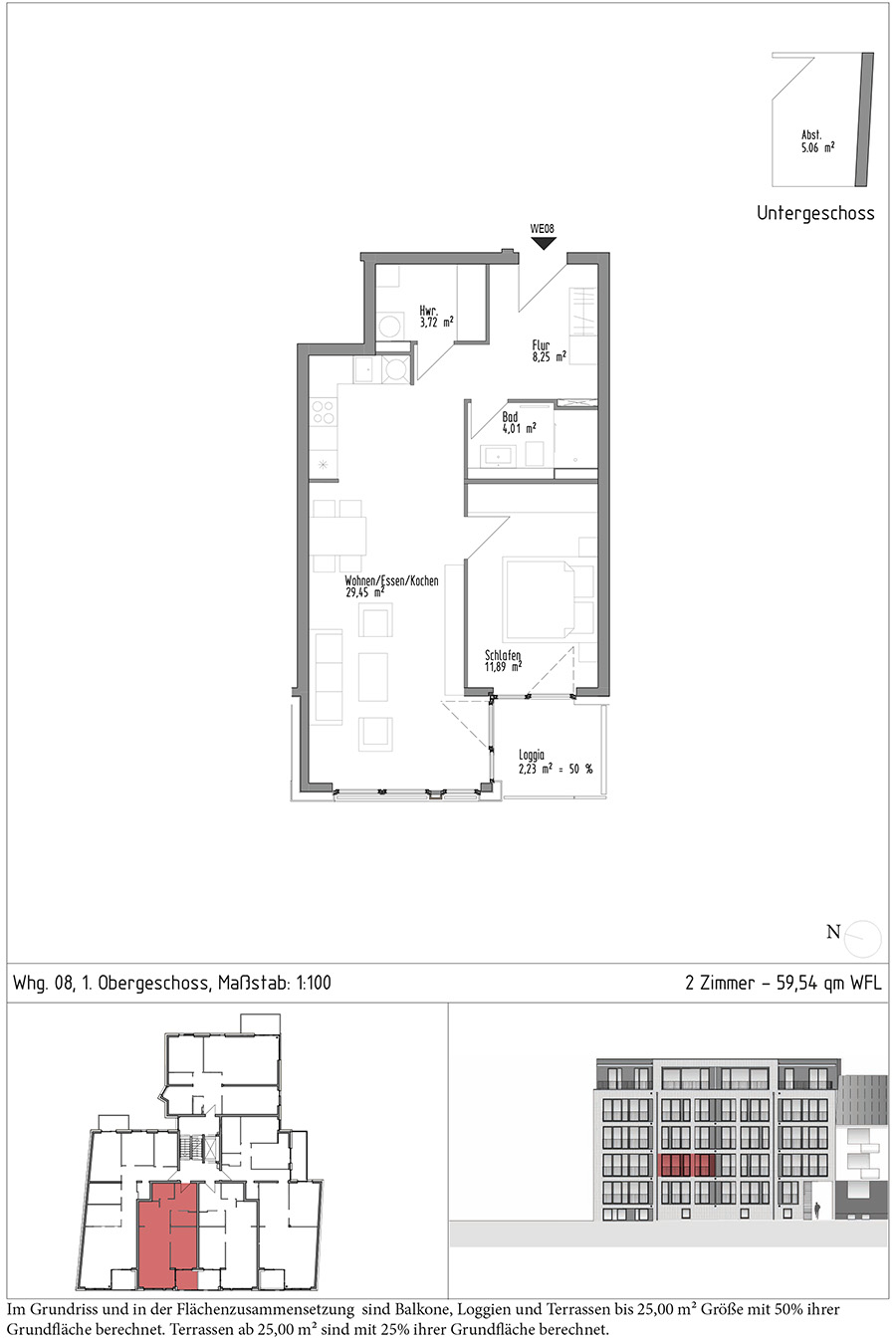 59,54 qm + Abstellraum 5,06 qm