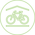 In der Gartenanlage befindet sich nicht nur ein Carport, sondern auch eine Fahrradgarage, in der jeder sein Fahrrad abstellen bzw. sein Elektrofahrrad aufladen kann.