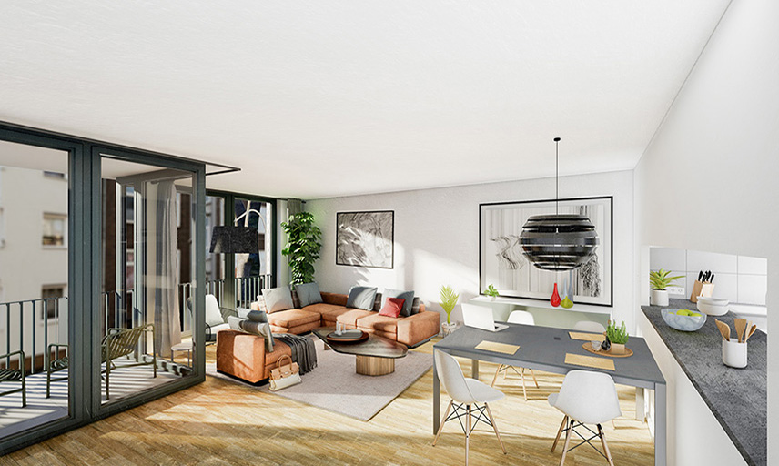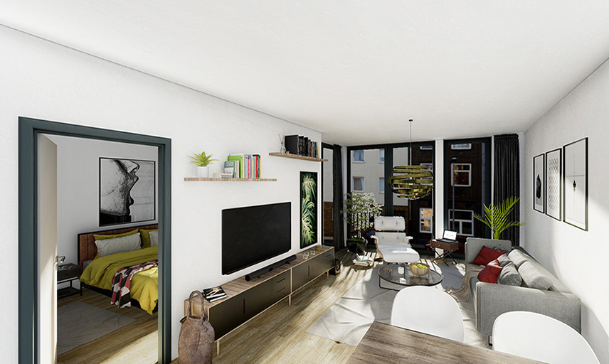 Die Wohnungen im Mehrfamilienhaus werden von einer zeitlosen mondernen Architektur geprägt. Die größzügigen Fensterflächen sorgen für helle Räume, ein offenes Wohngefühl und die optische Verbindung von innen nach außen. Die Fenster- und Türgriffe sind aus Edelstahl. Jeder Raum verfügt über eine Fußbodenheizung, die individuell mit einem digitalen Thermostat einstellbar ist.